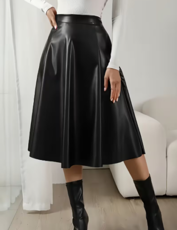 High-Waist Elegant Faux Leather A-Line Skirt for Women