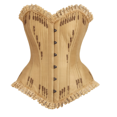 - Style: Ornate Gold Overbust Corset with Flossing, designed to unleash your wild side and add glamour to any outfit.